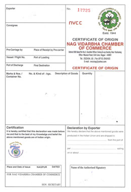 Following documents to be submitted for issuance of Certificate of Origin